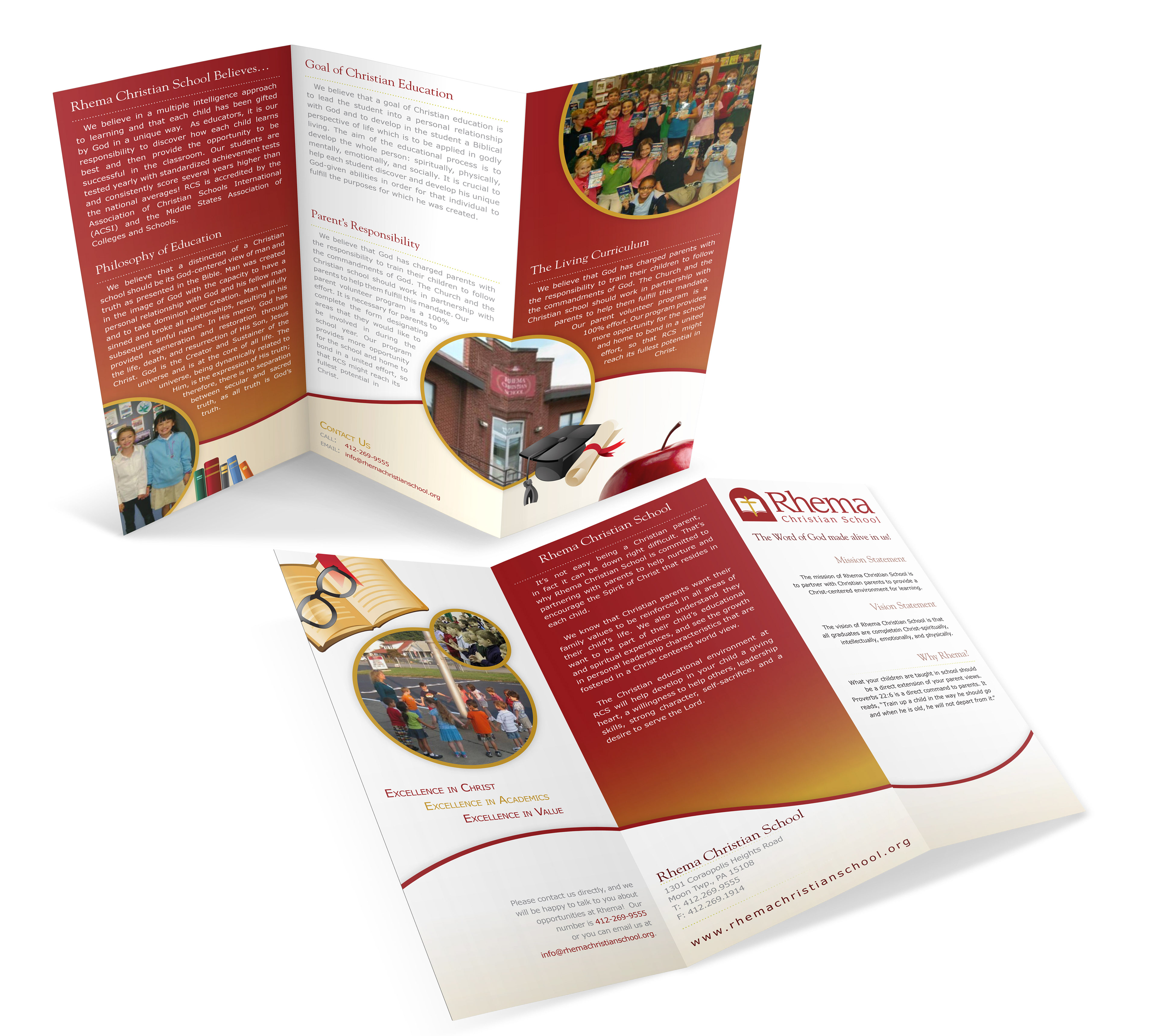 Trifold brochure designed for Rhema Christian School